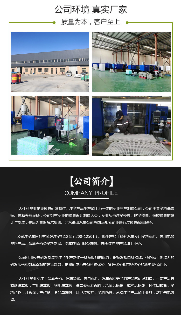 濰坊市天仕利塑業(yè)有限公司是集模具研發(fā)制作、注塑產(chǎn)品生產(chǎn)加工為一體的專業(yè)生產(chǎn)制造公司,原公司成立于2007年5月,注冊(cè)資本金400萬元人民幣。
